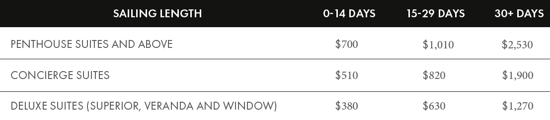 • Pre-paid gratuities